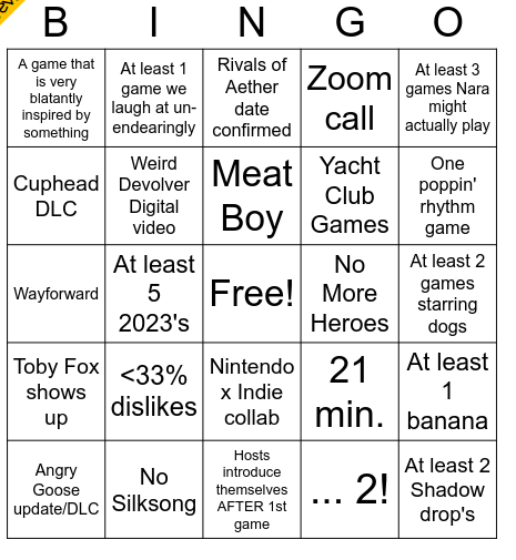 Everyone have your bingo cards for the Indie World direct today?