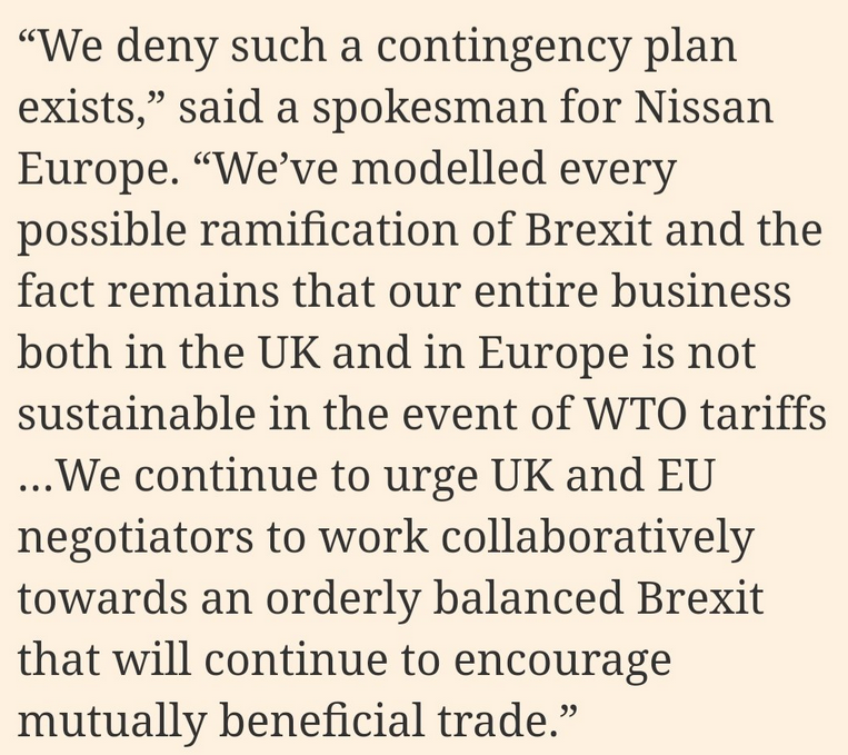 #Nissan sent a letter containing personal assurances from Theresa May? What on earth can have changed to make them think that these are completely worthless and meaningless words. I am sure that she was very clear.#projectfact#PeoplesVote#NorthEast -