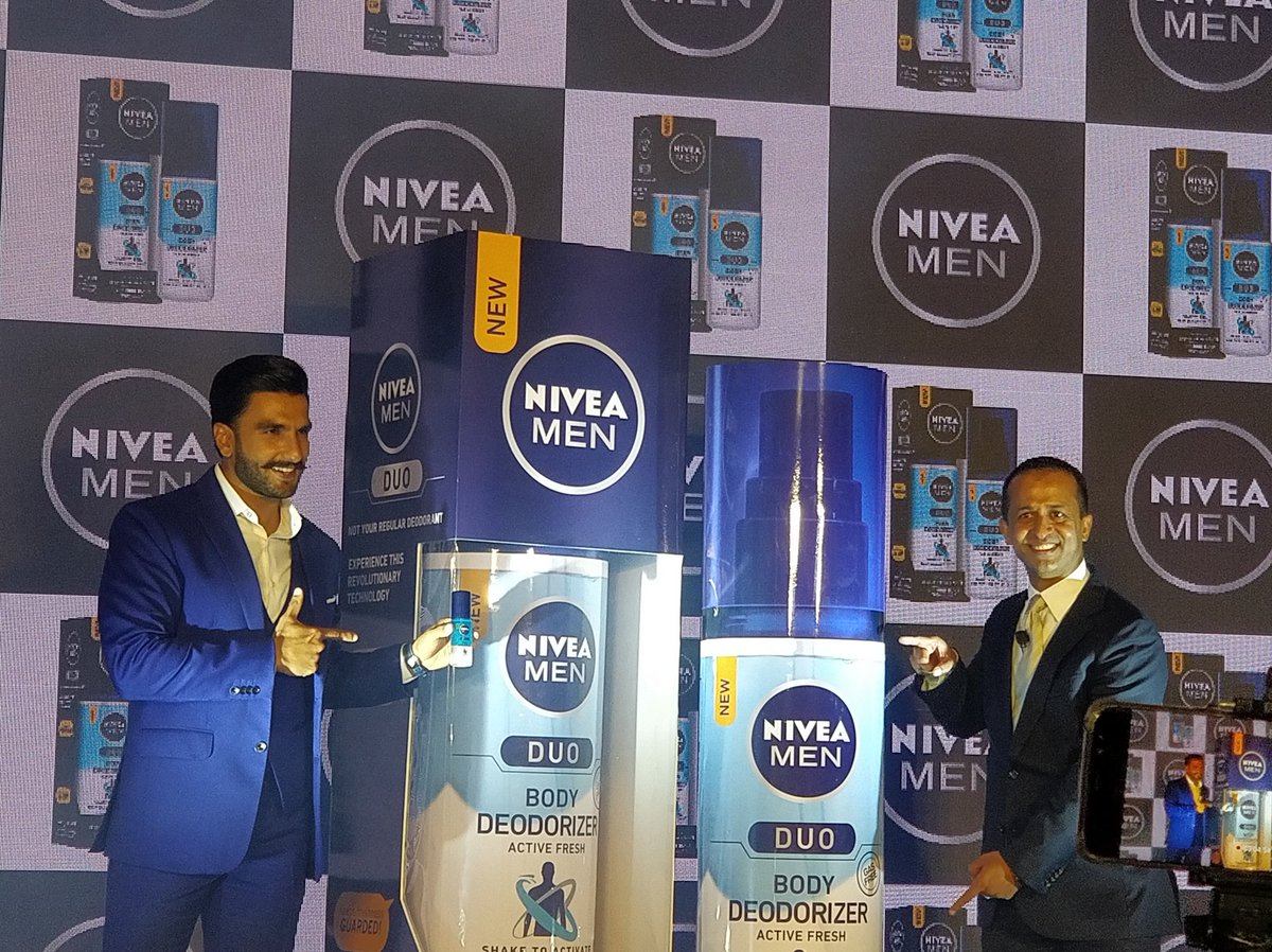 @RanveerOfficial, the new face of#NiveaMen, launches#Nivea Men Duo Body Deodorizer.@NIVEA_INDIA@NIVEAMEN_India#RanveerSinghForNivea#RanveerSingh#ItStartsWithYoupic.twitter.com/uLAz6RgZoJ