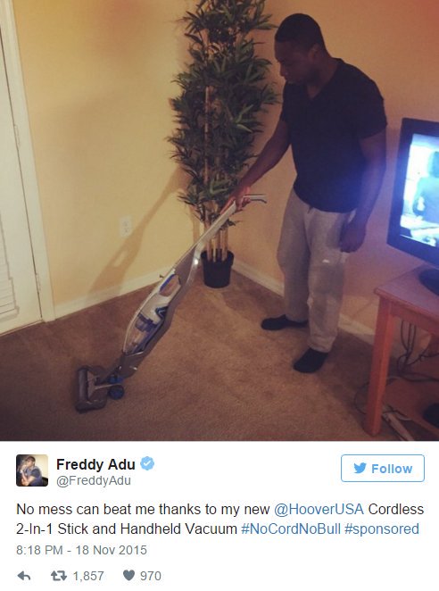 Former wonderkid Freddy Adu lazily advertising hoovers on Twitter is defo a Twitter Hall of Famer.