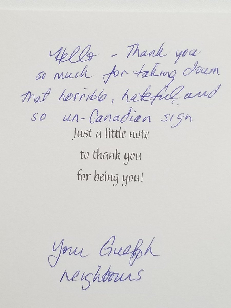 #Nolockdown sign? The wind blew it down and before Dan had a chance to repair it. In the meanwhile, we received the card in the mail. What's un-#Canadian is the Thank you card.pic.twitter.com/IARBk6EhpU