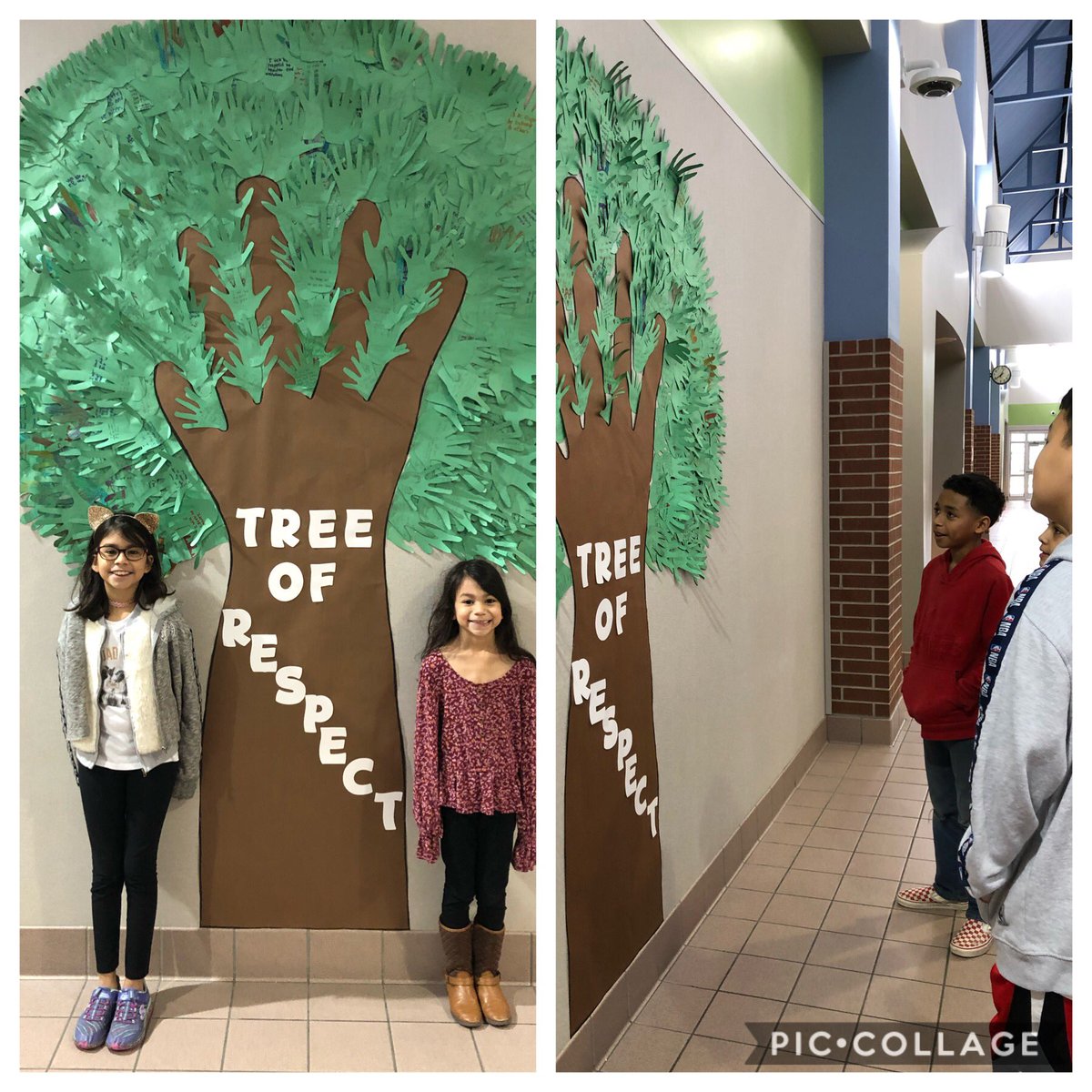 #NoPlaceForHate journey, students traced their hand, wrote how they can show respect on their hand & then are reminded daily w/our#TreeOfRespect that was created with all 900+of our students’ hands & hangs in the main hallway@KirkElementary as a reminder.