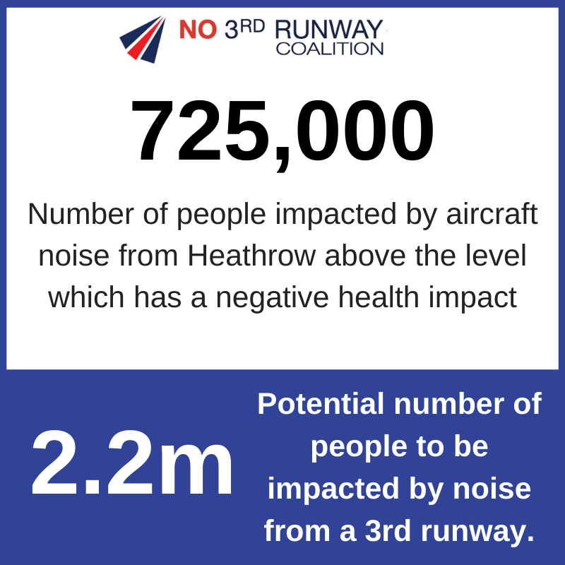 Noise is a health issue. Far too many people currently suffering adverse impacts of aircraft noise from Heathrow. Expansion would see this number trebled!