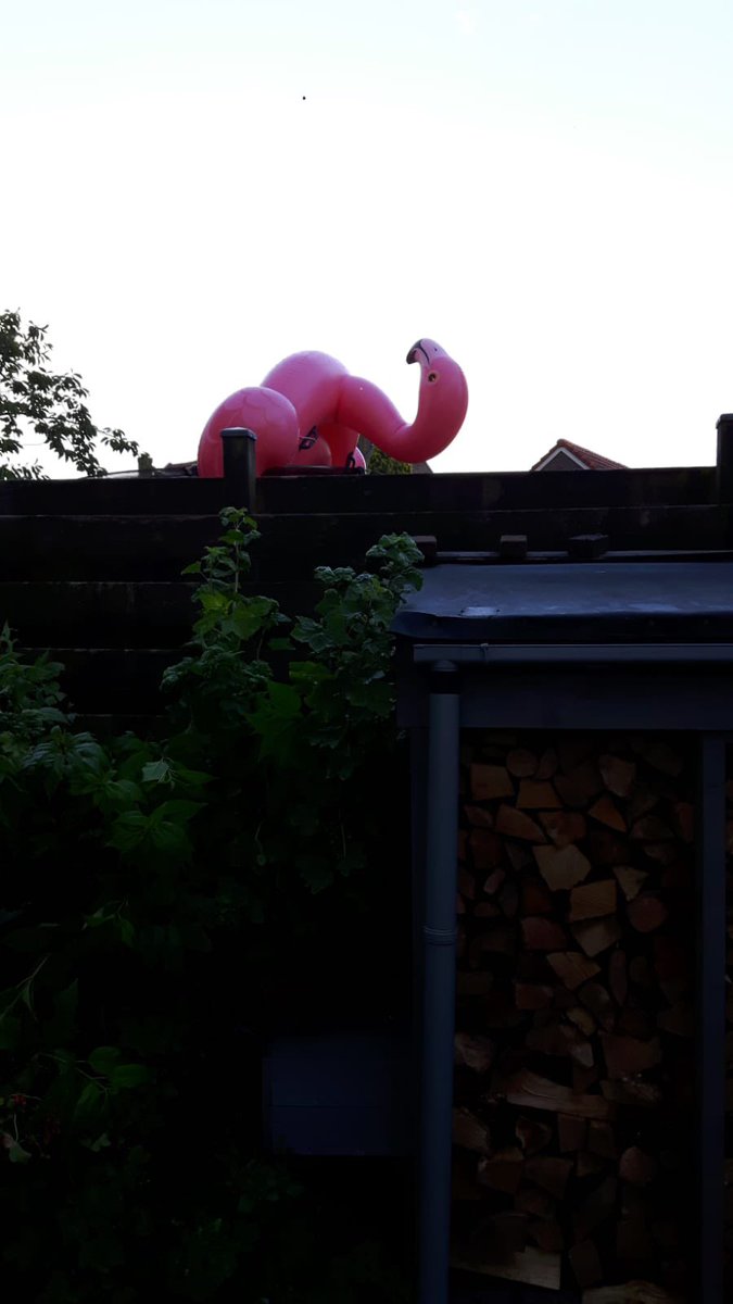 Mijn moeder maakt melding van een laag overvliegende flamingo.
