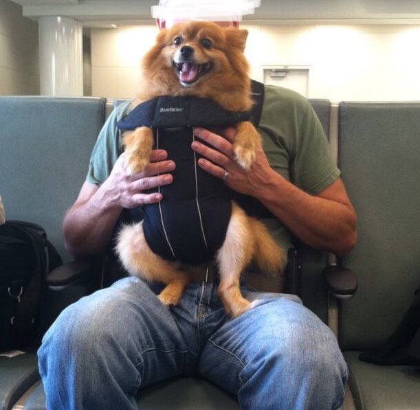 Nothing to see here folks! It’s just the cutest old puppy in a baby carrier. His name is Marley.