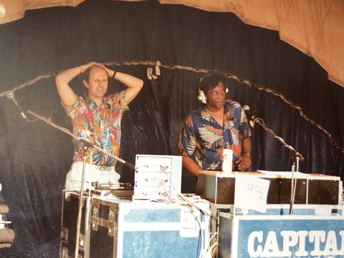 then have a look at this vintage photo circa mid ‘80s of me and the soul daddy Greg Edwards doing a live broadcast from Carnival for Capital Radio thanks to @CheriClass for the pic...what about those shirts.pic.twitter.com/mEiqz990GD