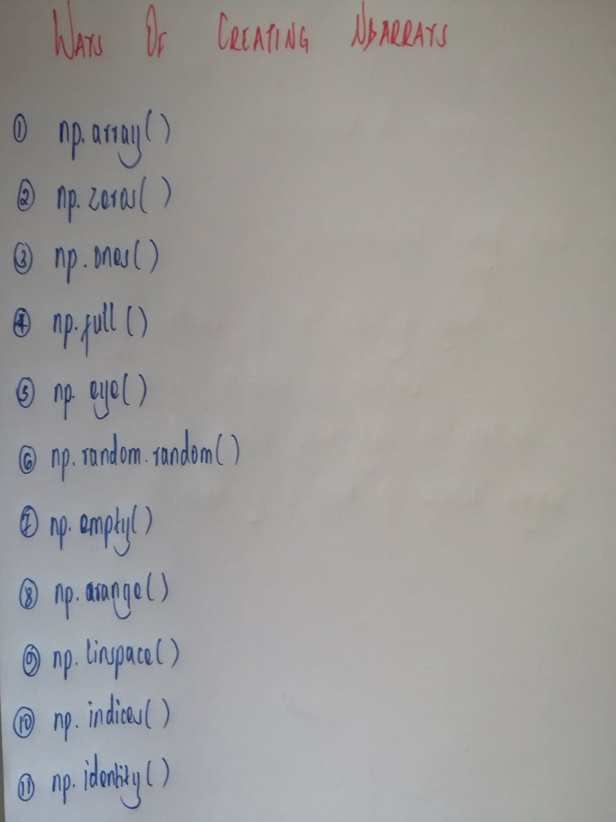 #NumPy basics, attributes of the ndarray object and ways of creating ndarrays.#100DaysOfCode#Pythonpic.twitter.com/mZQSrn07P9