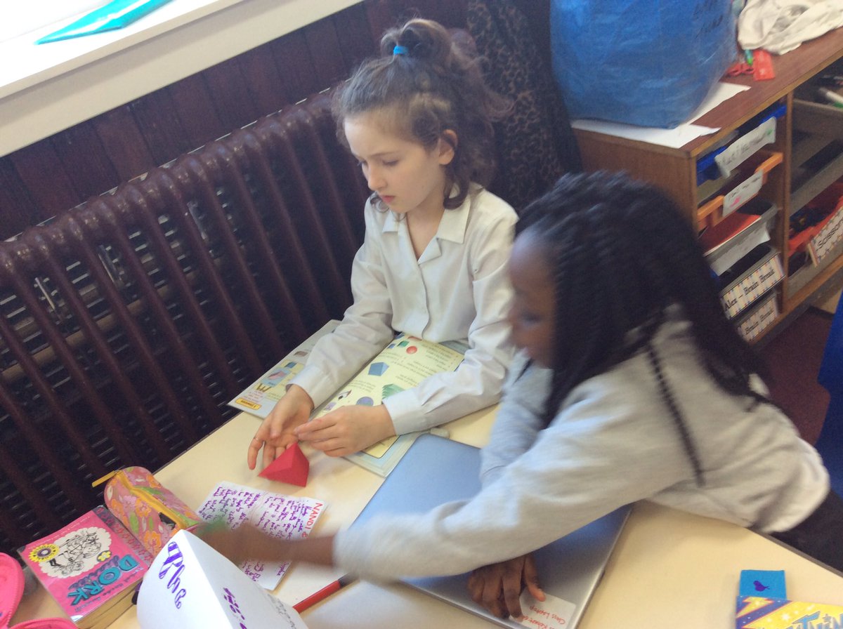 Discussing the properties of 3D shapes this morning and identifying the 2D shapes they are made up of.