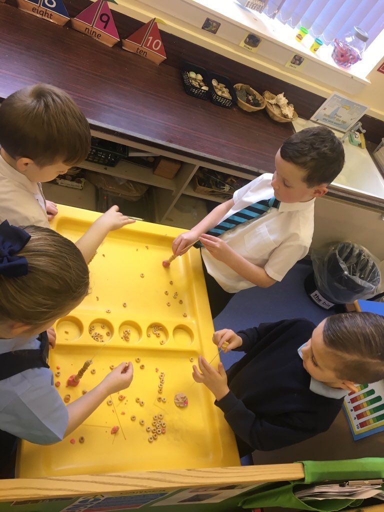 In P1C we have been developing our fine motor skills by threading cereal hoops onto spaghetti. We then counted how many hoops tall our hoop tower was. This is one you can try at home. Let us know how many hoops tall your tower was