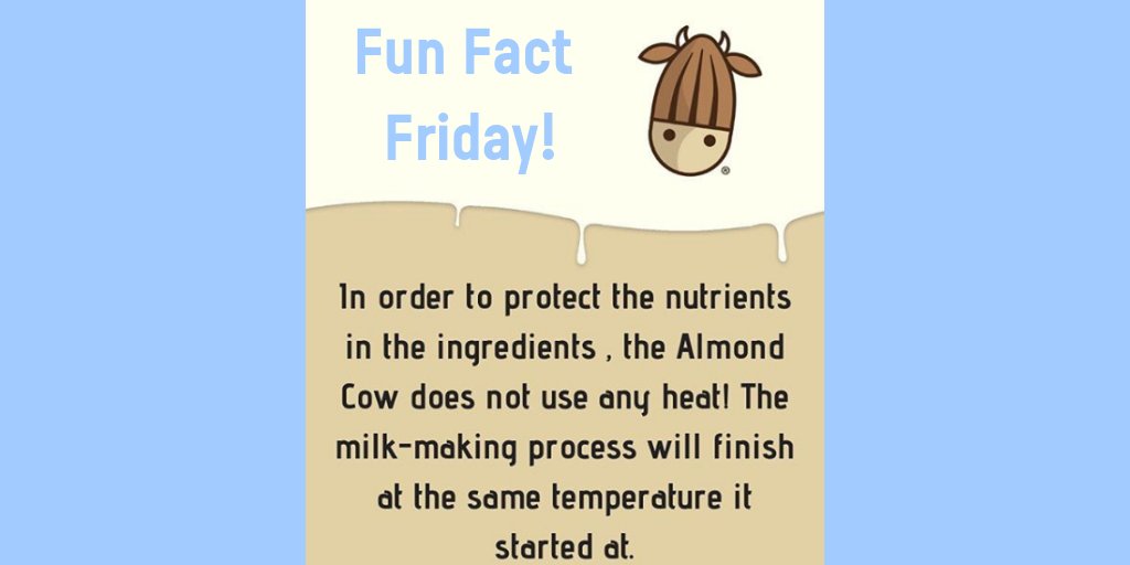 #FunFactFriday, did you know the Almond Cow does not use any heat during the milk-making process!?#nutrients#dairyfree#plantbasedpic.twitter.com/DvTc1ODsr4