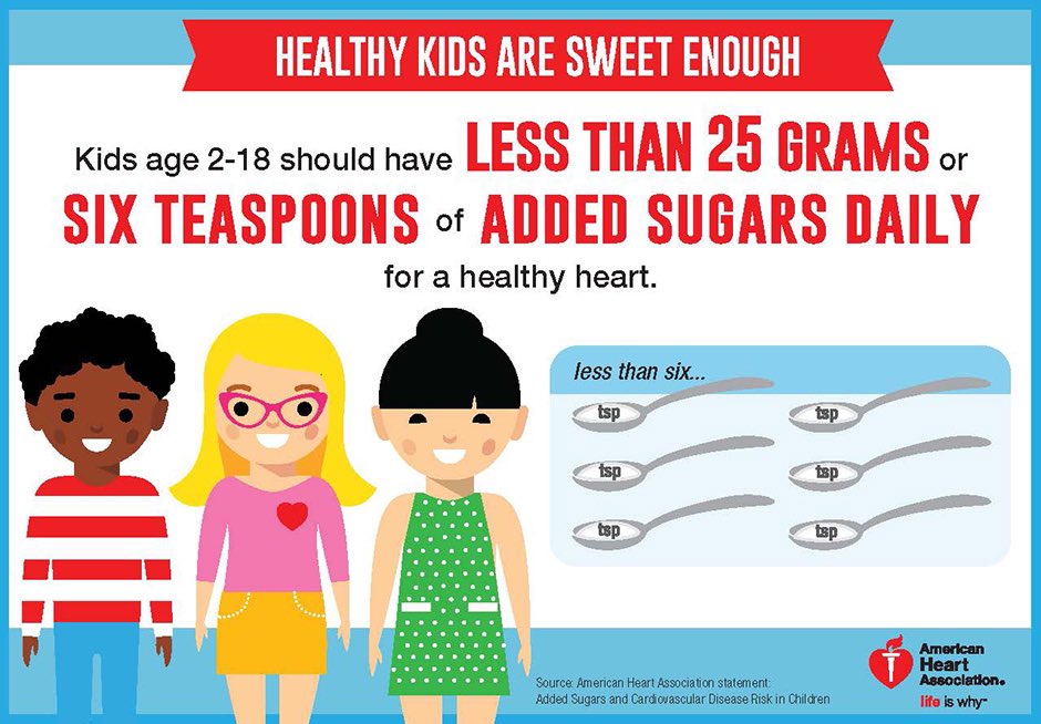 2/2 Kids should have <25 g added sugar/day. Preschools & afterschool program snacks including gummy “fruit”, flavored yogurt, fruit juice, chocolate milk, and processed cereal bars can easily exceed this in one sitting! Let’s offer and teach kids to choose