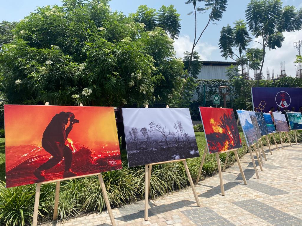 #Goma, exposition de photos à l'ouverture de la première conférence internationale sur la gestion des volcans des Virunga. Ces photos illustrent l'éruption du volcan#Nyiragongo