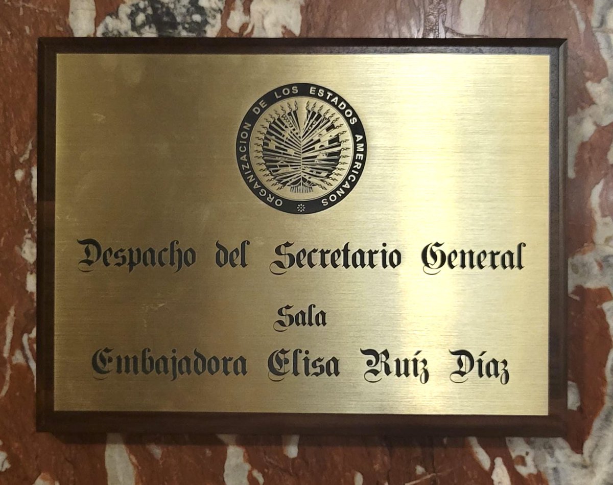 La #OEA ayer rindió homenaje póstumo a la embajadora Elisa Ruiz Díaz, quien fuera representante permanente del Paraguay. Se habilitó la “Sala Embajadora Elisa Ruiz Díaz – MNB2-20”, en el edificio principal de la organización en Washington.