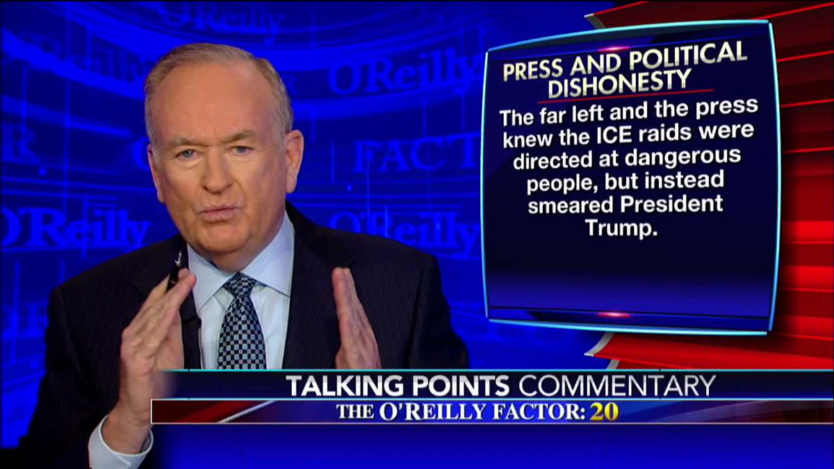@oreillyfactor: The far left and the press knew the ICE raids were directed at people, but instead smeared@POTUS.#oreillyfactor pic.twitter.com/ekV6NWQ1wy