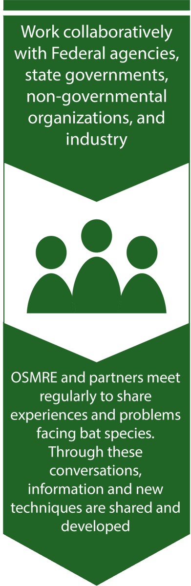 Finally, OSMRE works collaboratively with Federal agencies, state governments, non-governmental organizations, and industry to protect bats