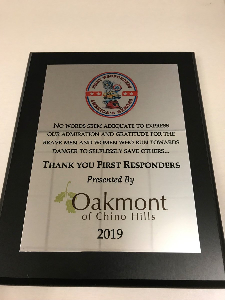#Oakmont for the beautiful First Responders plaque presented to us today.@SBCSDjwalker@Chino_Hills#Vision4Safety#WeLoveOurCitypic.twitter.com/Mx47OArRC1