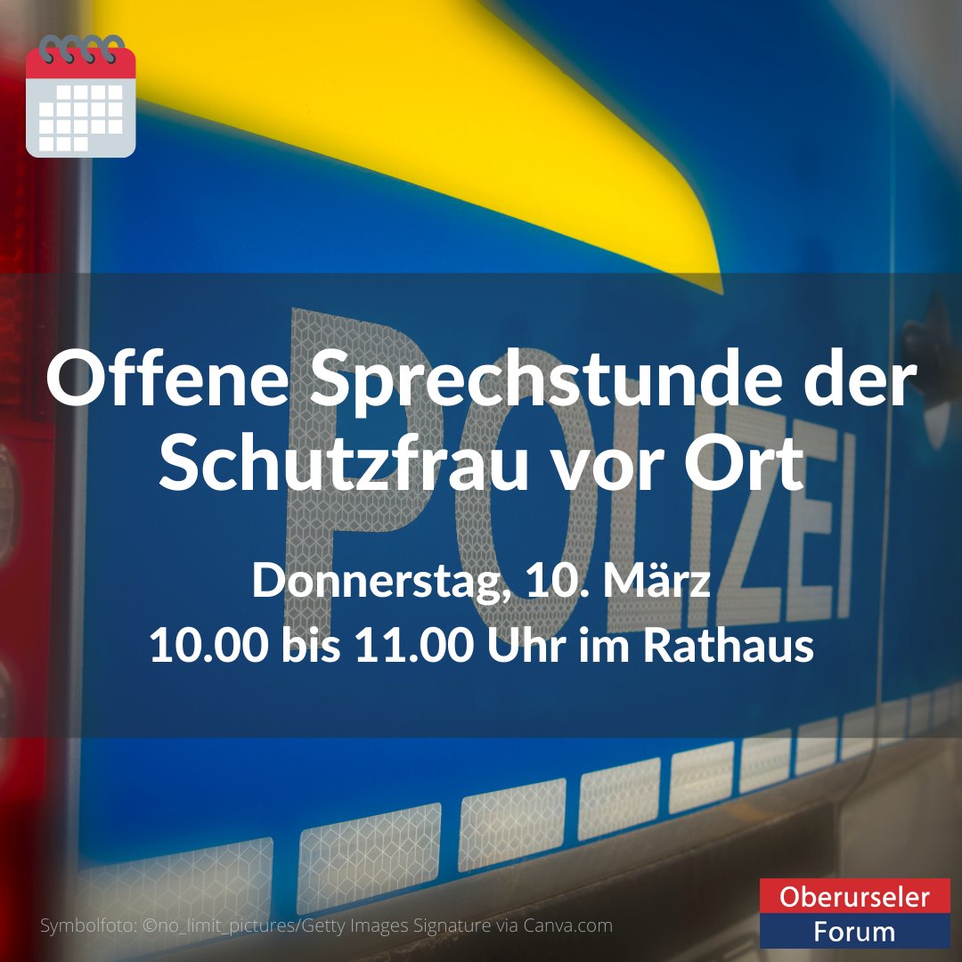 Offene Sprechstunde der Schutzfrau vor Ort am Donnerstag, 10. März, von 10.00 bis 11.00 Uhr im Rathaus Immer am 2. + 4. Donnerstag, 10.00 bis 11.00 Uhr Infos: https://obu.li/01m6