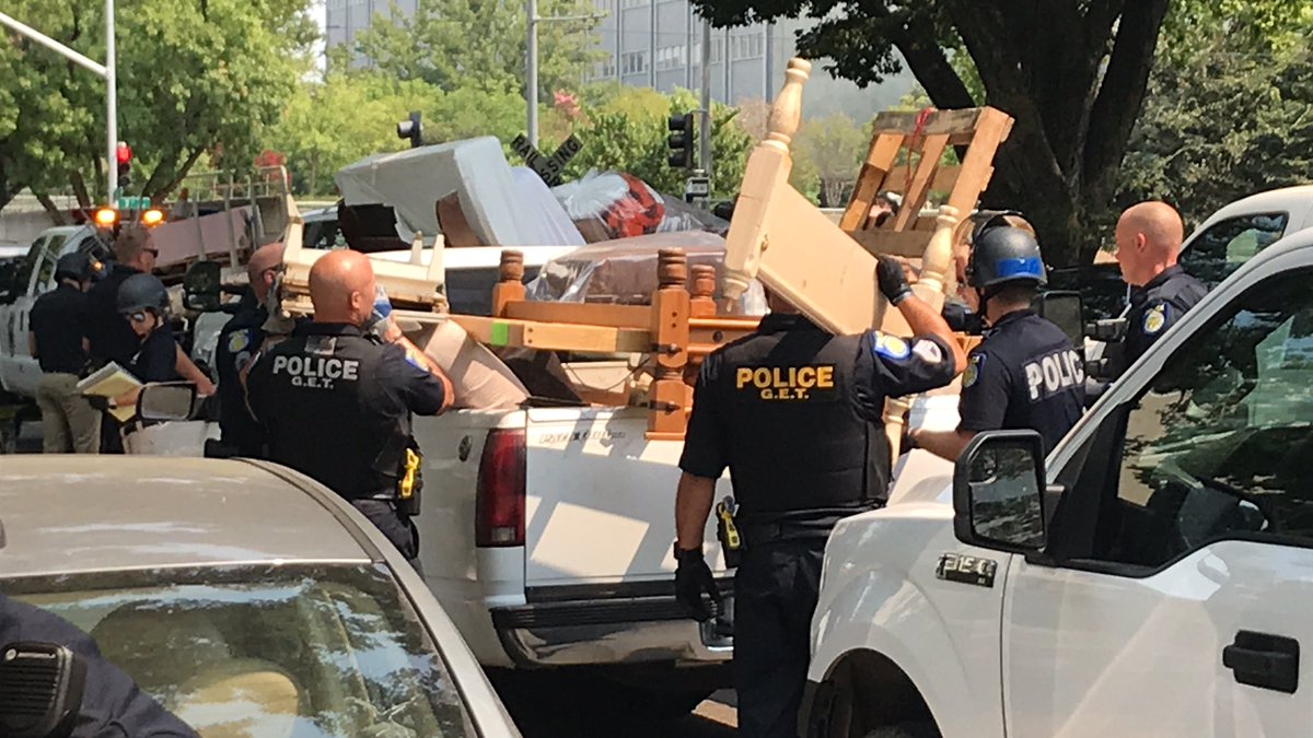 PPB at camp forcing people to leave! People are needed at city hall, please bring supplies if you can.