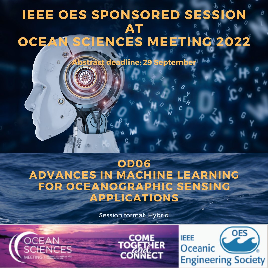 #OSM2022 for#MachineLearning enthusiasts out there. Hurry up and submit before deadline (29 Sep) Session (hybrid format): OD06 Advances in Machine Learning for Oceanographic Sensing Applications#OceanDecade#AIpic.twitter.com/BXb6I0F17r