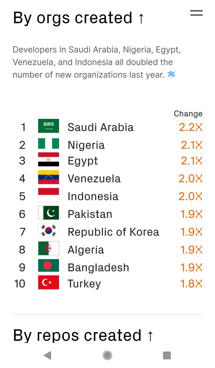 #GitHub 8th by repos created 5th by OS repos created 2nd by organizations created. Nigeria to the world!#octoverse#GitHubUniversepic.twitter.com/4wjpkRV4kK