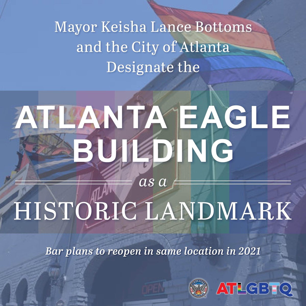 @KeishaBottoms designates the Atlanta Eagle building as a historic landmark. The bar plans to reopen next year in its original location. Read more: https://bit.ly/34mUhMB#OneAtlanta pic.twitter.com/6tcFzvWRTq