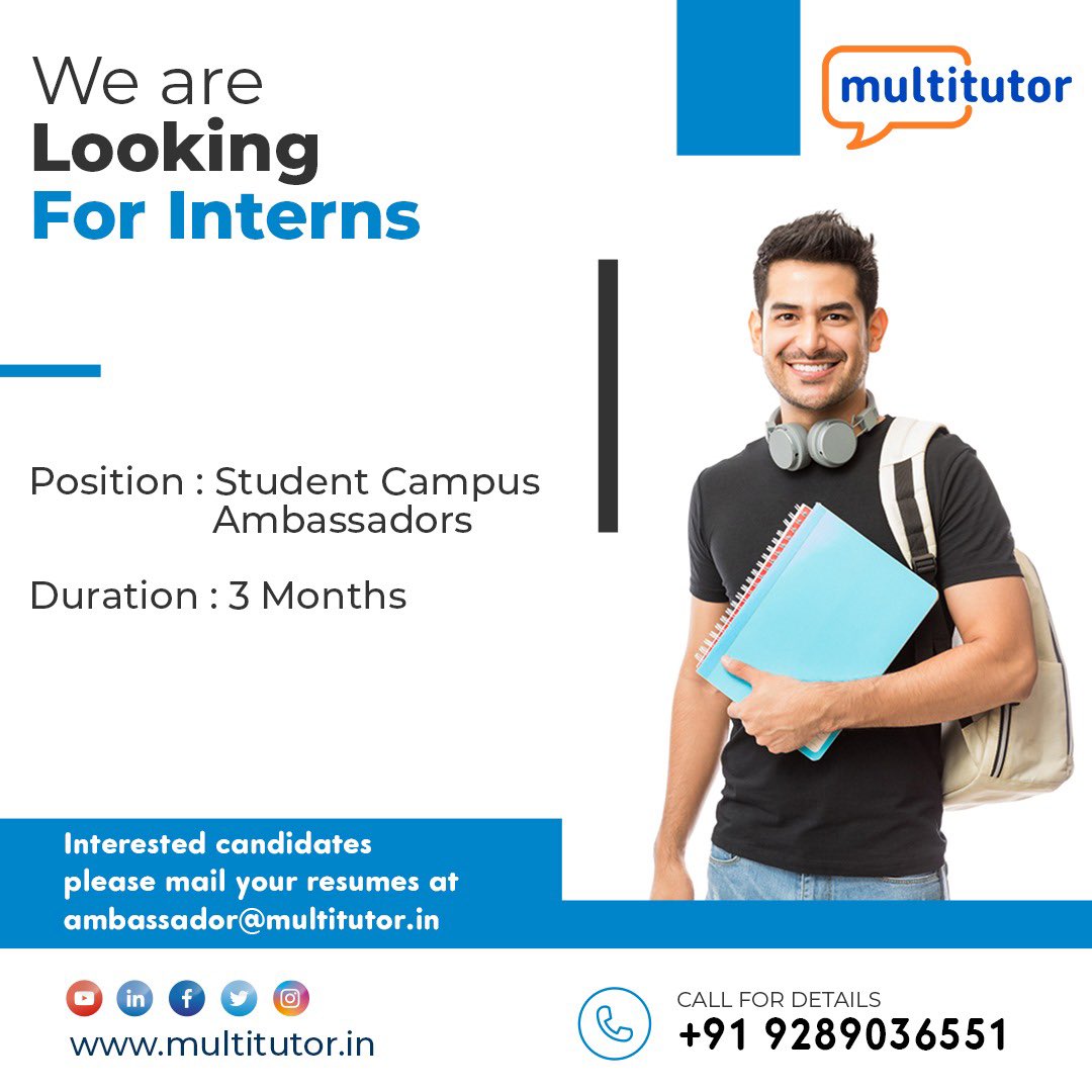 Multitutor is looking for smart, creative and driven students to work with us as a campus Ambassadors. Besides enabling those interested to learn from working in a professional setup and expand on their work resume. Do not miss this opportunity!!!