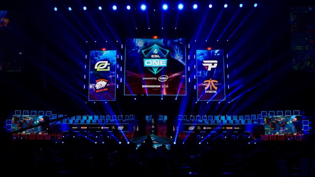 #ESLOne Birmingham is in full swing!#OpTicDota is looking to earn their spot at the Grand Finals as they take main stage in their match vs. Fnatic! Watch: https://www.facebook.com/WatchESLOne/videos/359251707932936/ …pic.twitter.com/9DZuKfCd8B