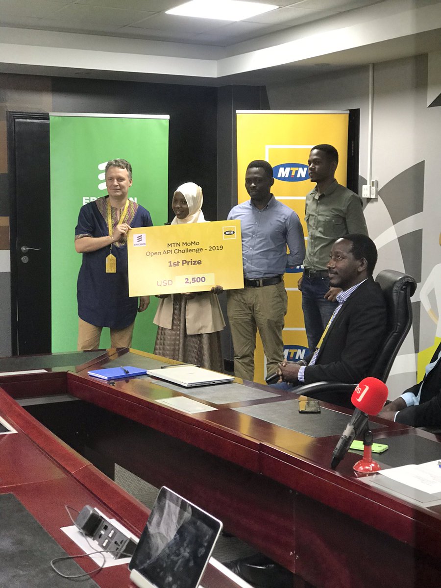 The Winners of the MTN MoMo open API challenge 2019 wins themselves USD 2,500 and a trip to Ericsson offices in Sweden for one team member. Team name: PearlBrains