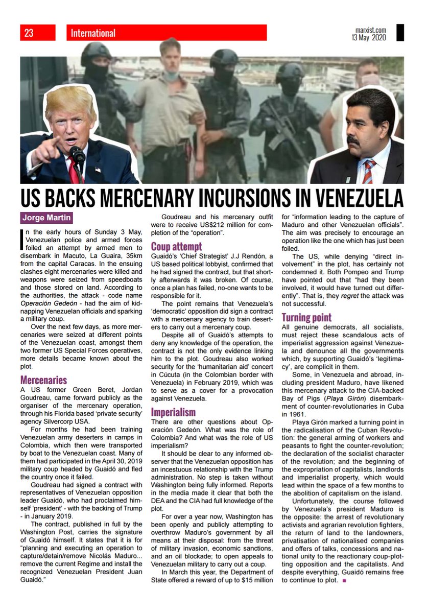 @marxistJorge summarises the mercenary attack on Venezuela in the latest issue of@socialist_app (get your copy here: https://www.socialist.net/newspaper-subscribe.htm …)#OperacionGedeon pic.twitter.com/eUXuiSHsNo