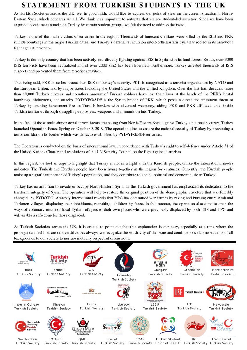 #OperationSpringPeace#TurkishAmericanStudentsUnite As Turkish students across the US, we would like to objectively express our views on the current situation in Northeastern Syria. Here is our statement:pic.twitter.com/JrN9BgiMSc