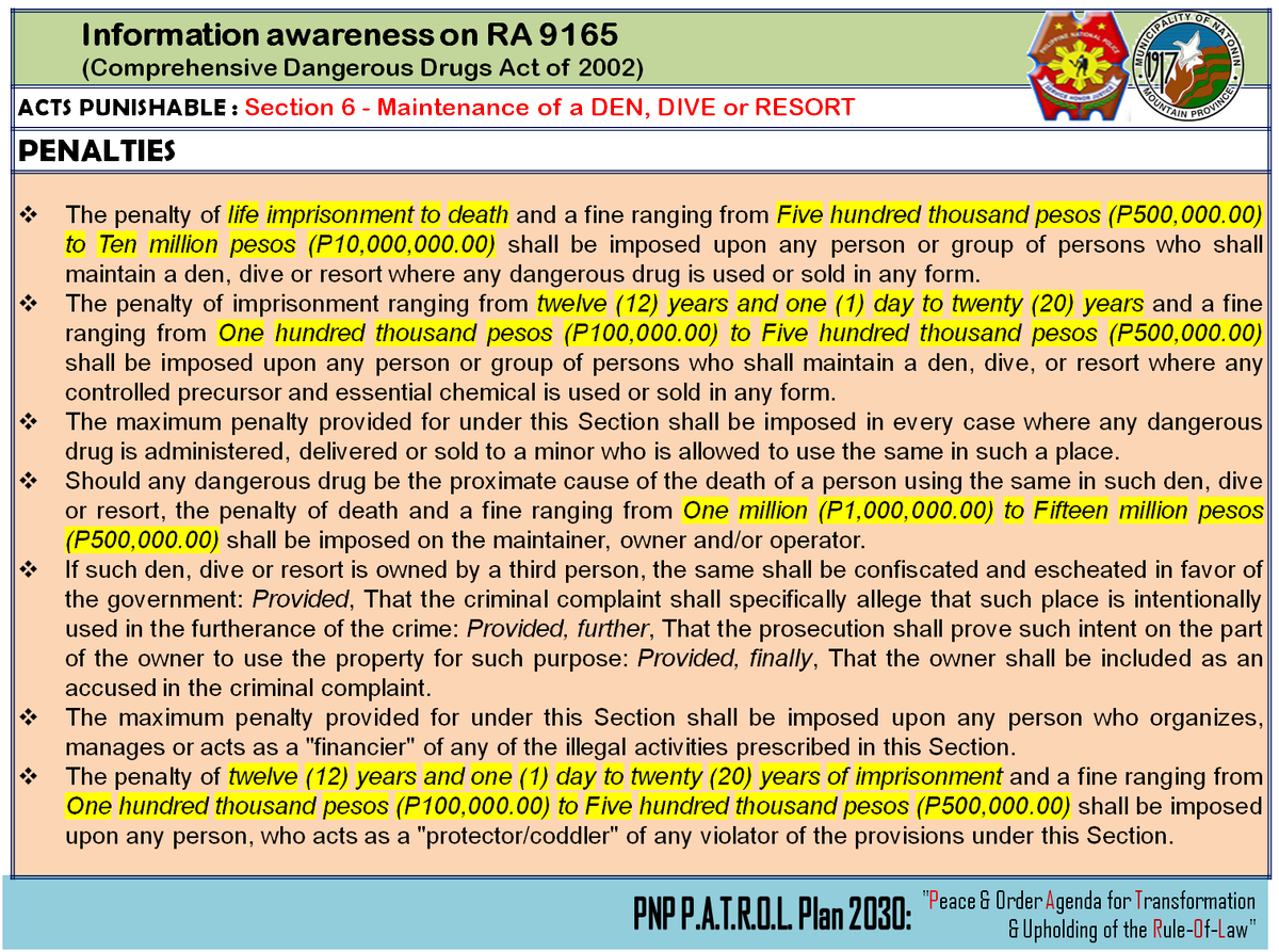 Awareness on section 6 of RA 9165
