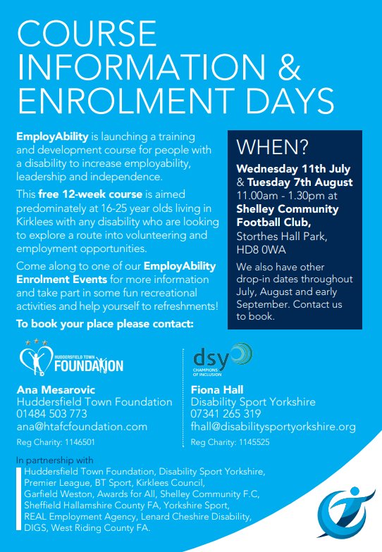 @DisSportYorks@Shelley_FC@townfoundation#opportunities#disability#learningdisability Come along and find out more, and sample the course.pic.twitter.com/tNoYWFugVp