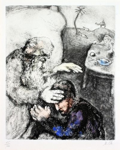 Isaac Blesses Jacob with Esau’s Blessing by Yoram Ranaan