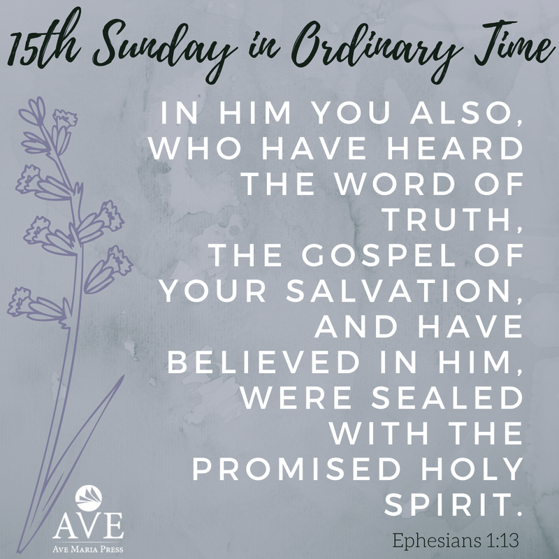 The Fifteenth Sunday in Ordinary Time "In him you also, who have heard the word of truth, the gospel of your salvation, and have believed in him, were sealed with the promised holy Spirit." Ephesians 1:13