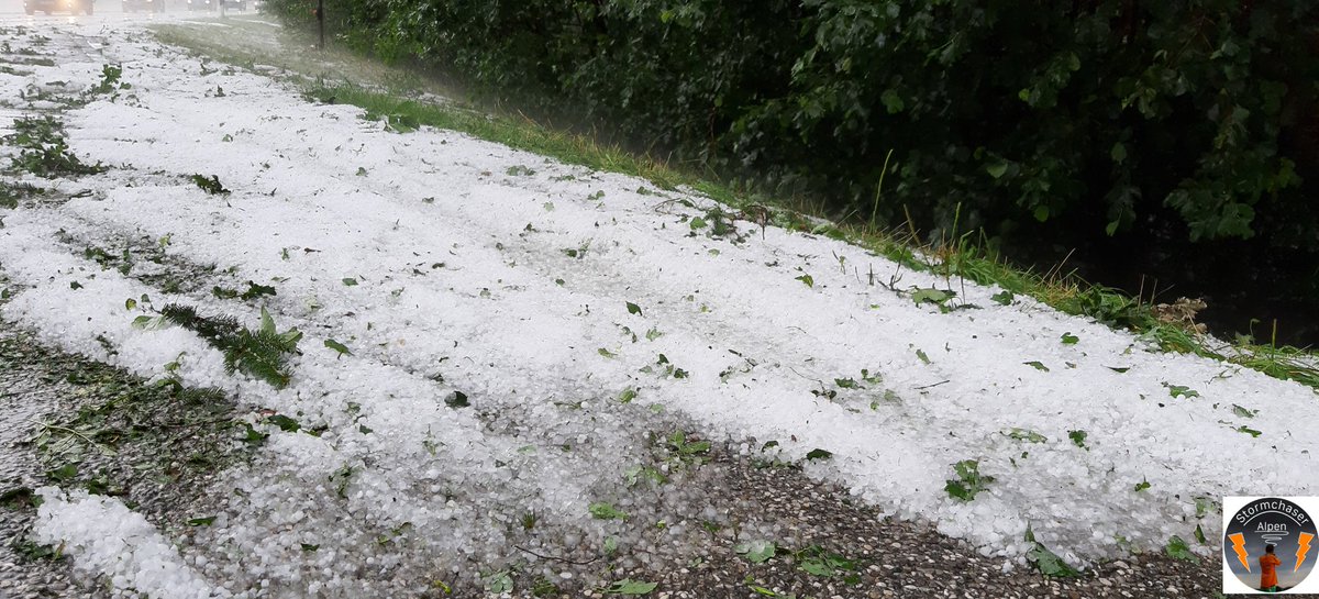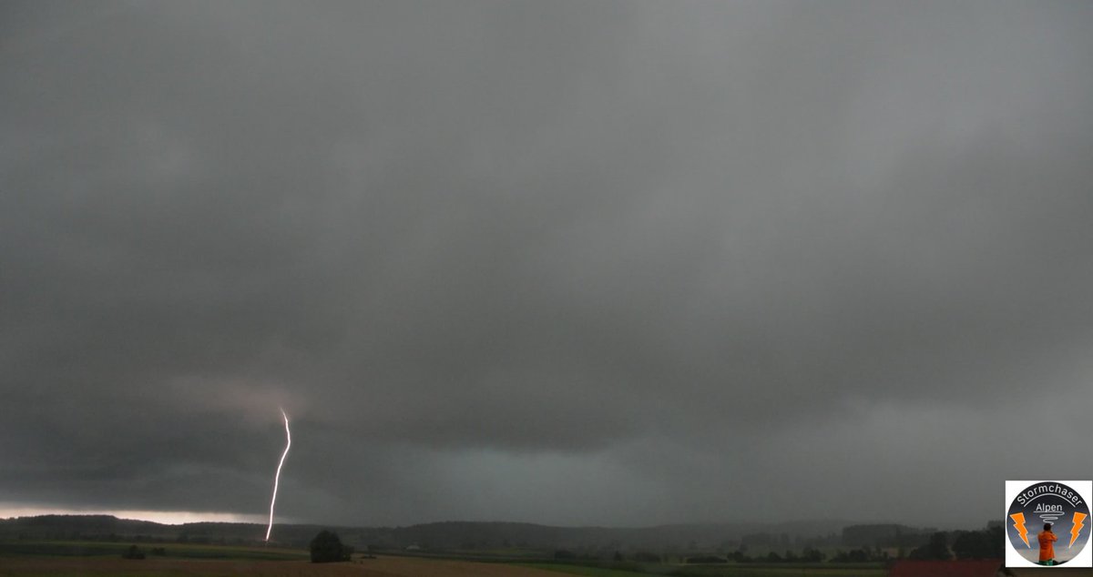 #Superzelle südlich von#Weilheim am 25.07.2021. Es kam zu einem starken#Downburst mit#Orkanböen, einige Bäume vielen um und es kam zu#Hagel um die 3- 4 cm.#Feuerwehr und#Polizei fuhren zu unzähligen Einsätzen.