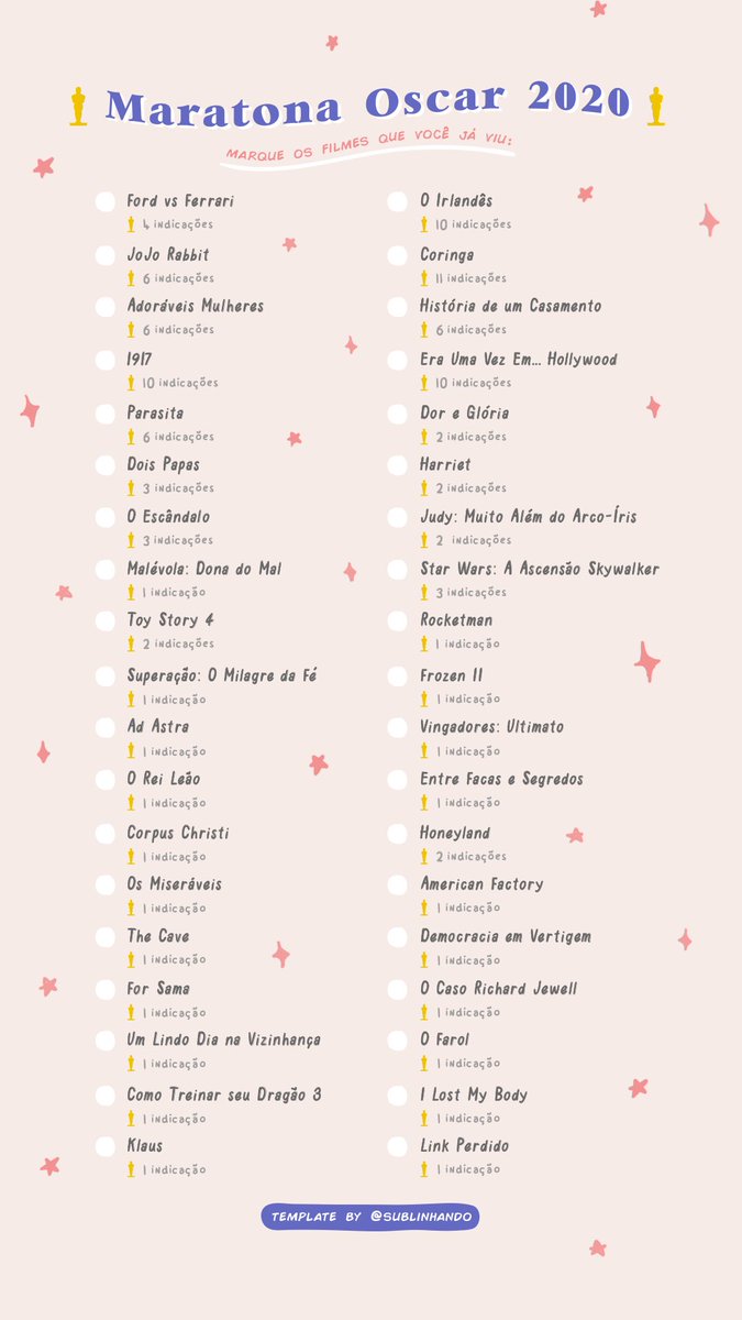 #Oscar2020 pra marcar quais filmes você já viu (: