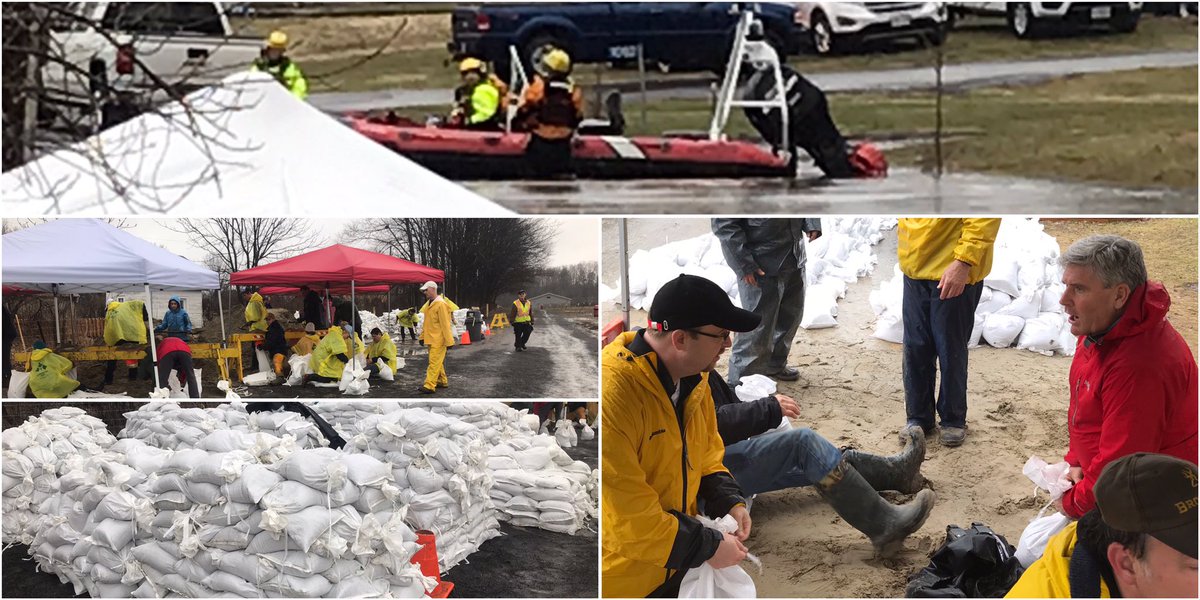 Current situation at the Community Centre in Constance Bay this morning. Loads of sandbags being transferred to sites in need. Many emergency personnel on site.