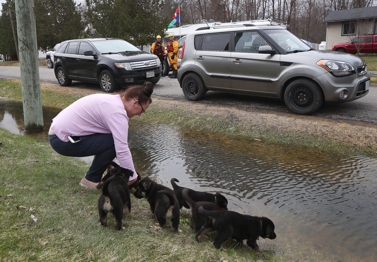 #Ottawa river water outside his home on Armstrong Roadin#Cumberland Saturday April 27, 2019. Tanya Masek tries to keep her puppies out of the flood water.#ottflood#ottawaflooding#OttFlood19@OttawaCitizen@ottawaweather#ottnews#ottweatherpic.twitter.com/SsqNrhigXR