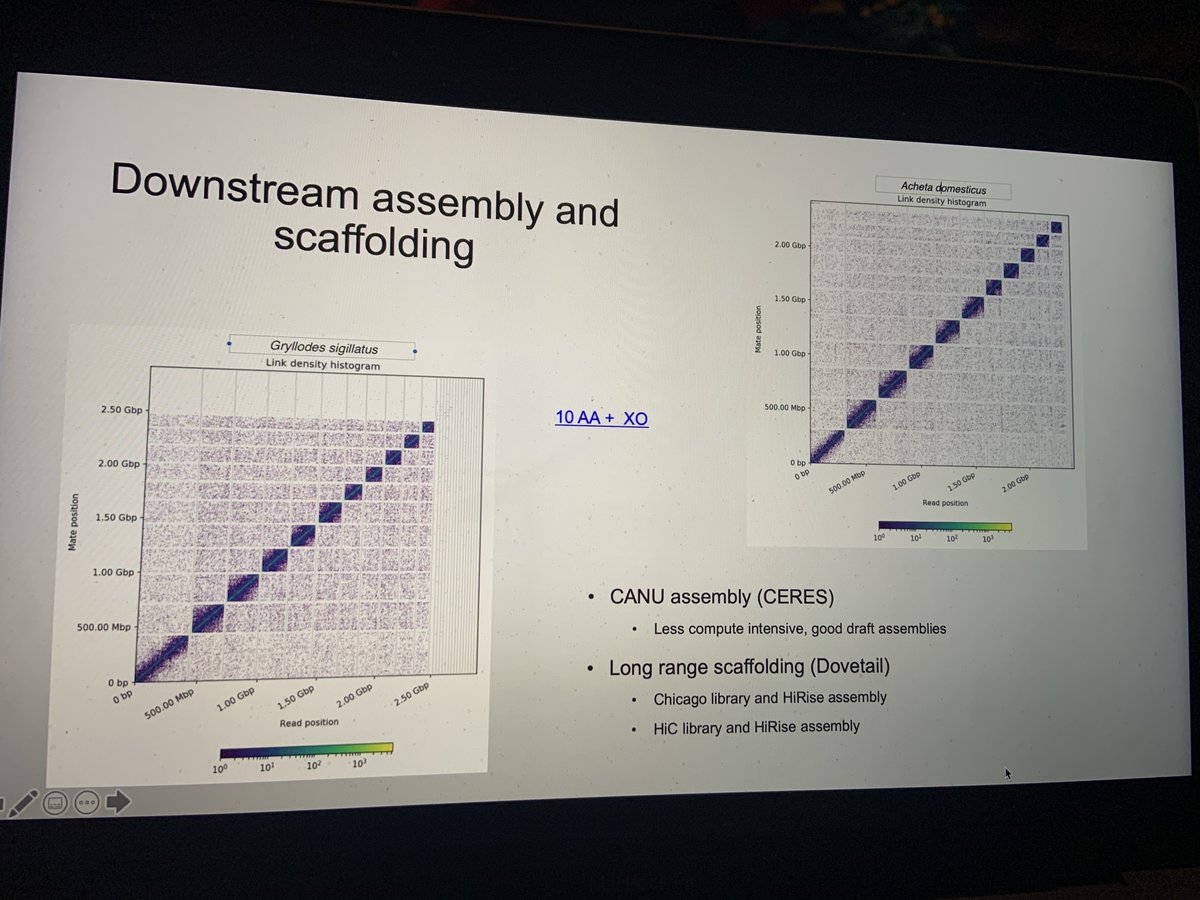 #pagxxviii and this cool talk on cricket chromosome scale assemblies using long reads and Dovetail Brenda Oppert@USDA_ARS & Aron Dossey@AllThingsBugspic.twitter.com/0lM5jyJLRu