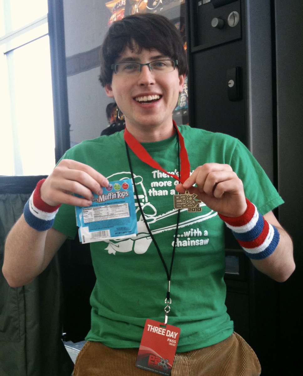 #PAXEAST. The Advance Wars tourney was cancelled due to lack of interest, so they had a BBMT-eating contest instead. Having missed a few meals immediately prior, I won! pic.twitter.com/KkUKuuIMqb