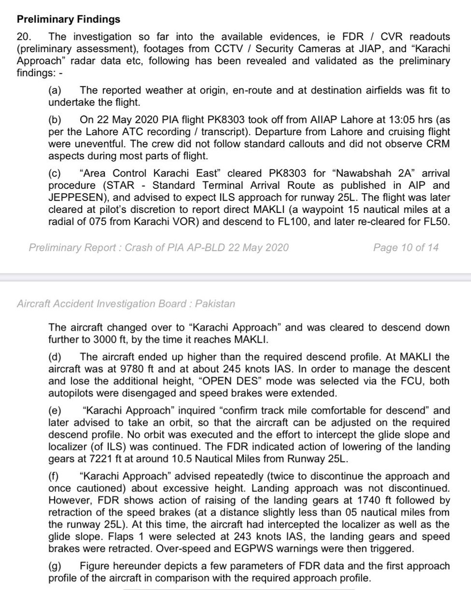 Pakistan’s Air Accident Investigation Board has released its preliminary report on the crash of