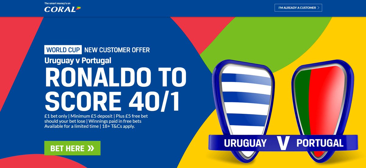 40/1 for Ronaldo to score ANYTIME vs Uruguay!