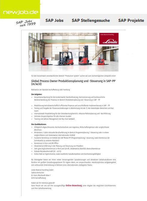#SAP-#PP (m/w/d) in Aschaffenburg oder Hamburg gesucht von@LindeMaterial Handling GmbH http://www.newjob.de/stellenanzeigen/global-process-owner-produktionsplanung-steuerung-sap-pp.9842.php …#sap#stellenbörse#jobspic.twitter.com/XtWocShKvt
