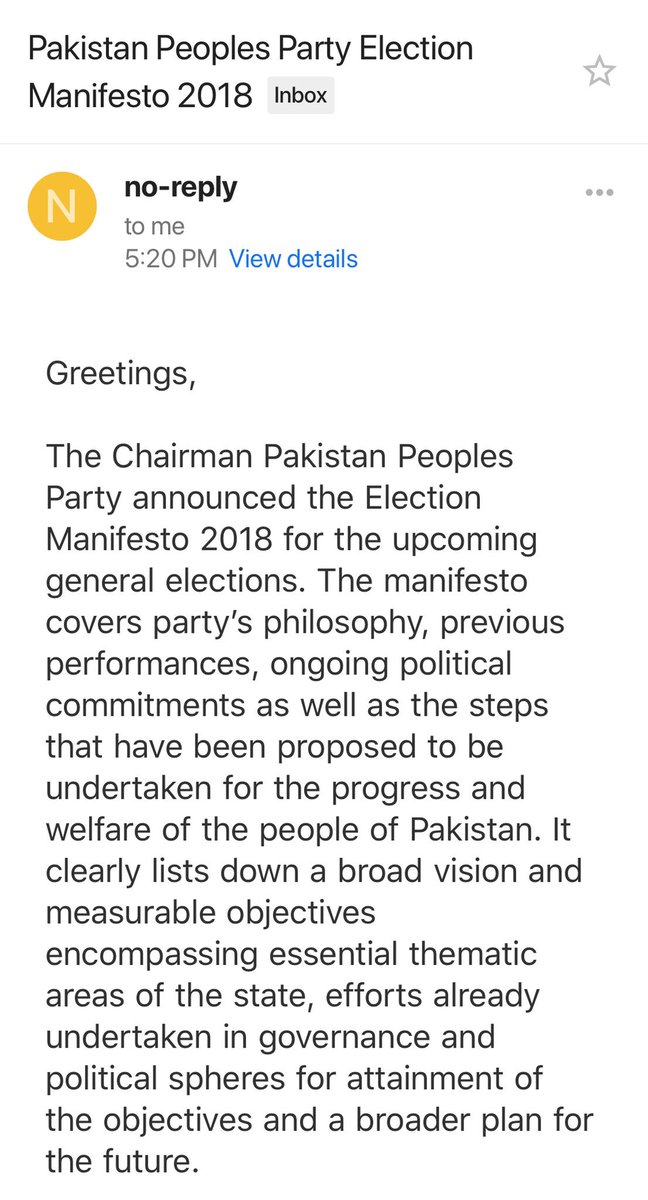 @BBhuttoZardari and Thank You#PPPFamily for sending#PPPManifesto in Urdu and in English thru email. Love that