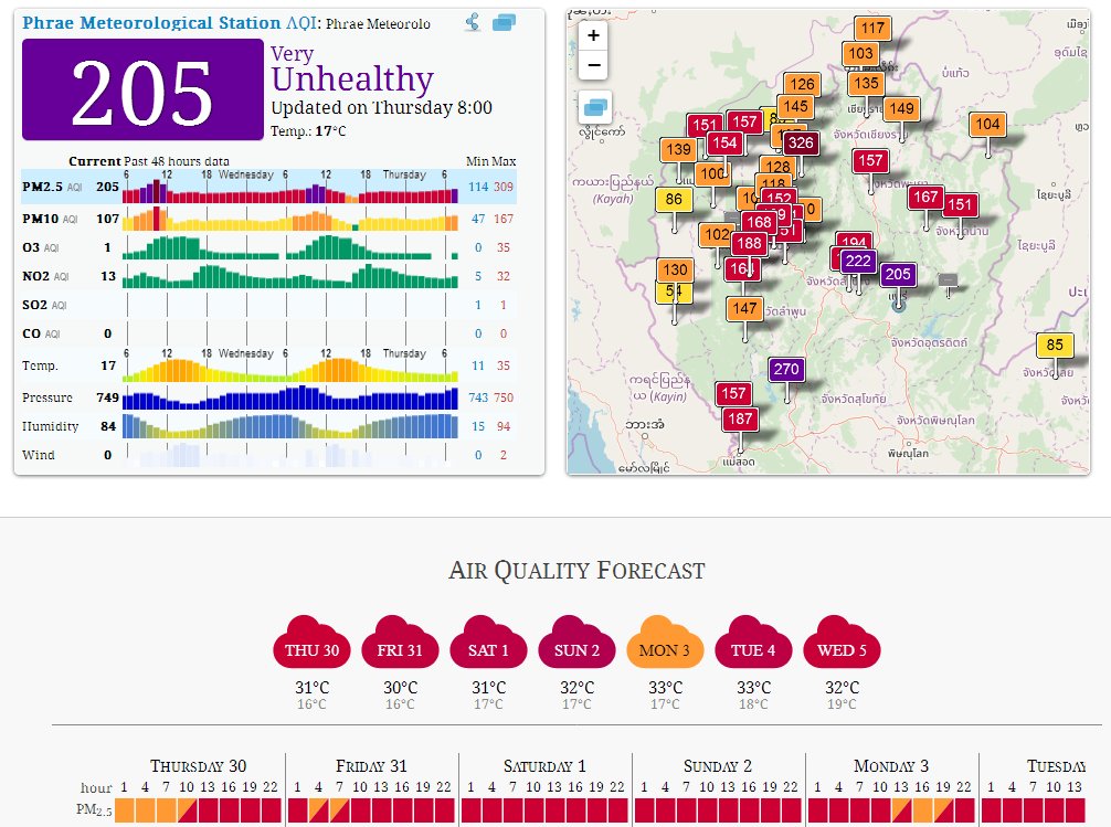 #PM25#PM10#Smog#AirPollution here#Prae Northern#Thailand Highest values in the later morning OUTLOOK / FORECAST worse ! via http://qicn.org/ pic.twitter.com/oN5Lx59okK