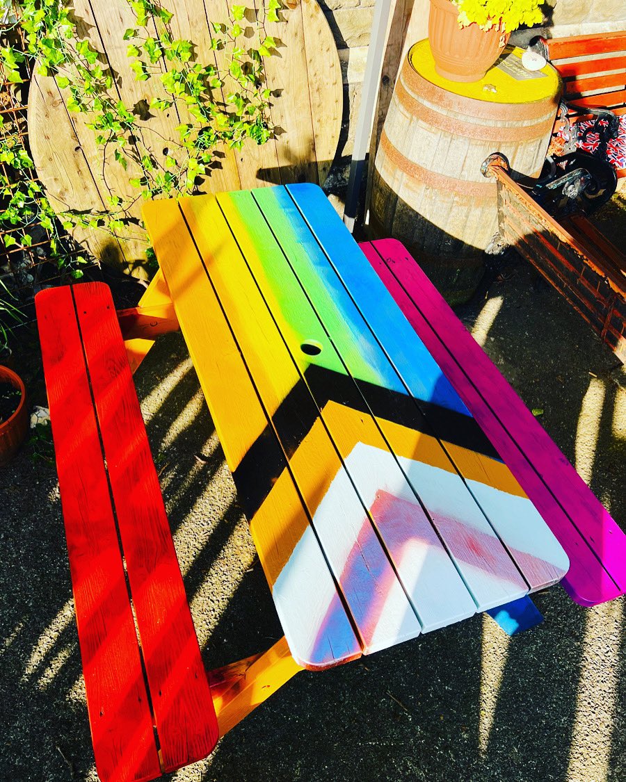 #Pride bench. Everyone is welcome in our community safe space.