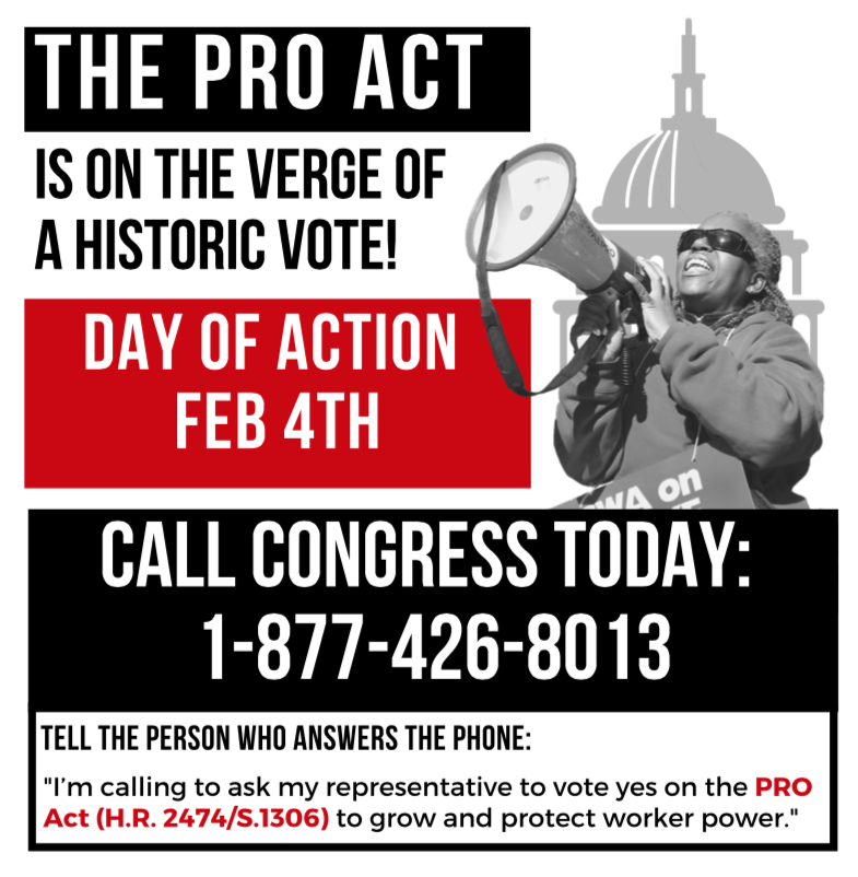 #PROAct? Here are some good reasons: it’ll be easier to organize a union to improve pay & uphold basic job protections & standards. Make sure Congress listens & answers to working people like us: 1-888-848-4824 pic.twitter.com/9agBtmcvgl