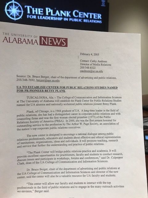 #BetsyPlank. Today, we celebrate the past, present and future of the Center as we continue developing countless generations of#PRpros. pic.twitter.com/2Cyj6wU09p