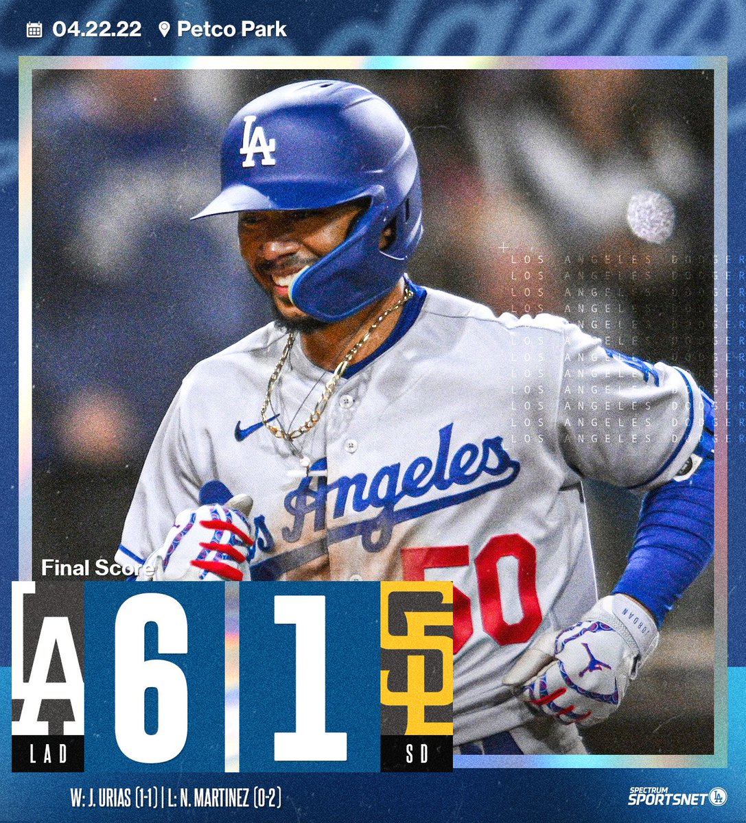 #Dodgers 6#Padres 1 Betts blasts two, Max one High fives, smiles & few exhales Urias earns first win#homeruns#mookiebetts#MaxMuncy#Win#JulioUrias#PetcoPark#Dodgershaikupic.twitter.com/0CDwj1Q3Sd