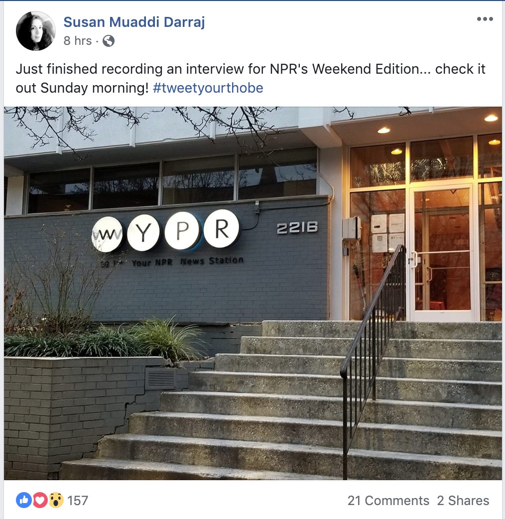 @NPRWeekend Edition for@SusanDarraj 's interview about the viral#TweetYourThobe#celebration of@RepRashida's swearing into the#116thCongress while proudly garbed in her#Palestinianthobe. <3 pic.twitter.com/BQUL3uREvL